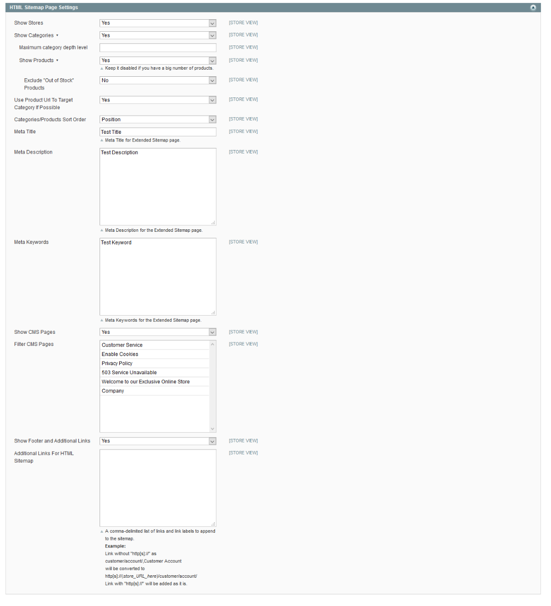 Our extension support HTML site map which allow search engine and customer easily find add links ant one place. You can also customize your HTML sitemap according to your desire. You can control almost everything from configuration page like should individual store page show or which page should not show in sitemap etc. you can also set metadata for sitemap page.